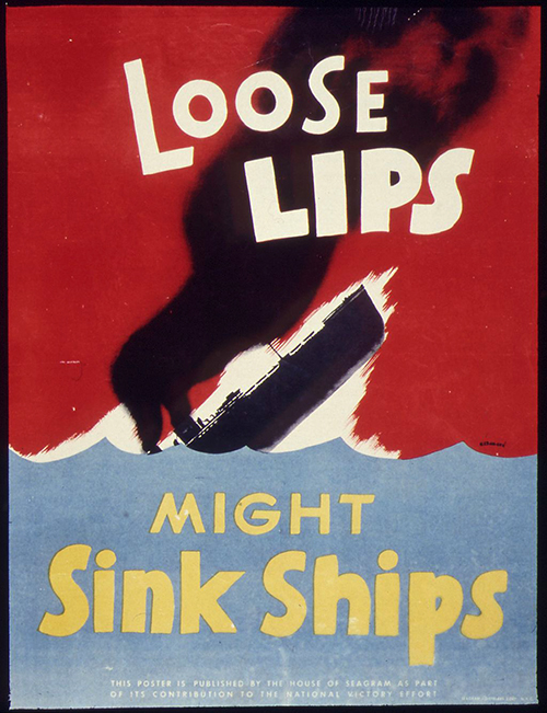 As a result, in part, of these War experiences, my father, like many in the Greatest Generation, was detached and very private. The military was trained not to talk about what they were doing. So were military families. Spies could be everywhere. See this collection of WWII U.S. posters on the need for secrecy to save boys lives. Here is one of the most popular on loose lips sinking ships.